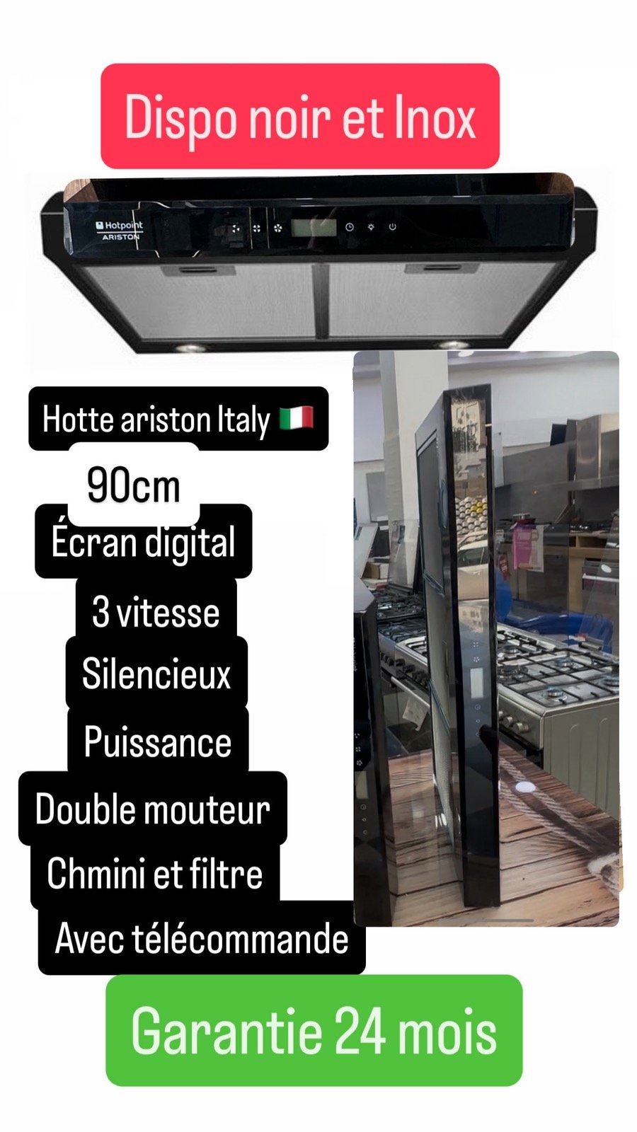 Hotte ariston Italy 🇮🇹 90 digital 3 vitesse disponible noir et Inox garantie 24 mois