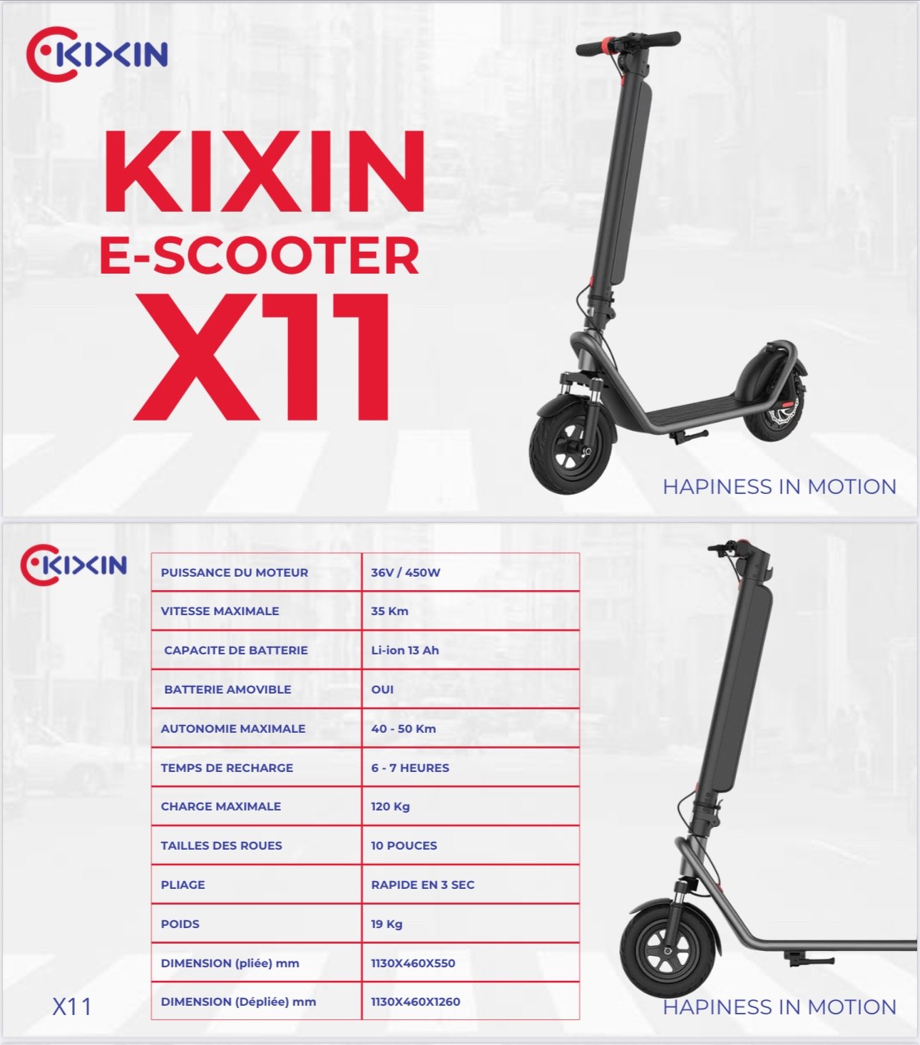 KIXIN X11 10″ Folding Electric Scooter 450W Motor 36V 13Ah Battery